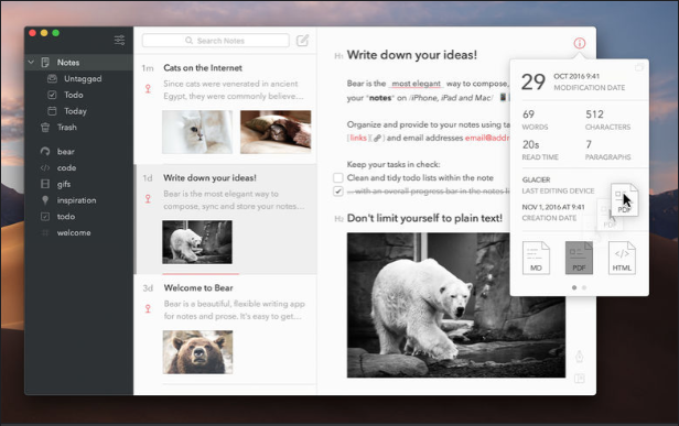 Bear — полноценный редактор с широкими возможностями.